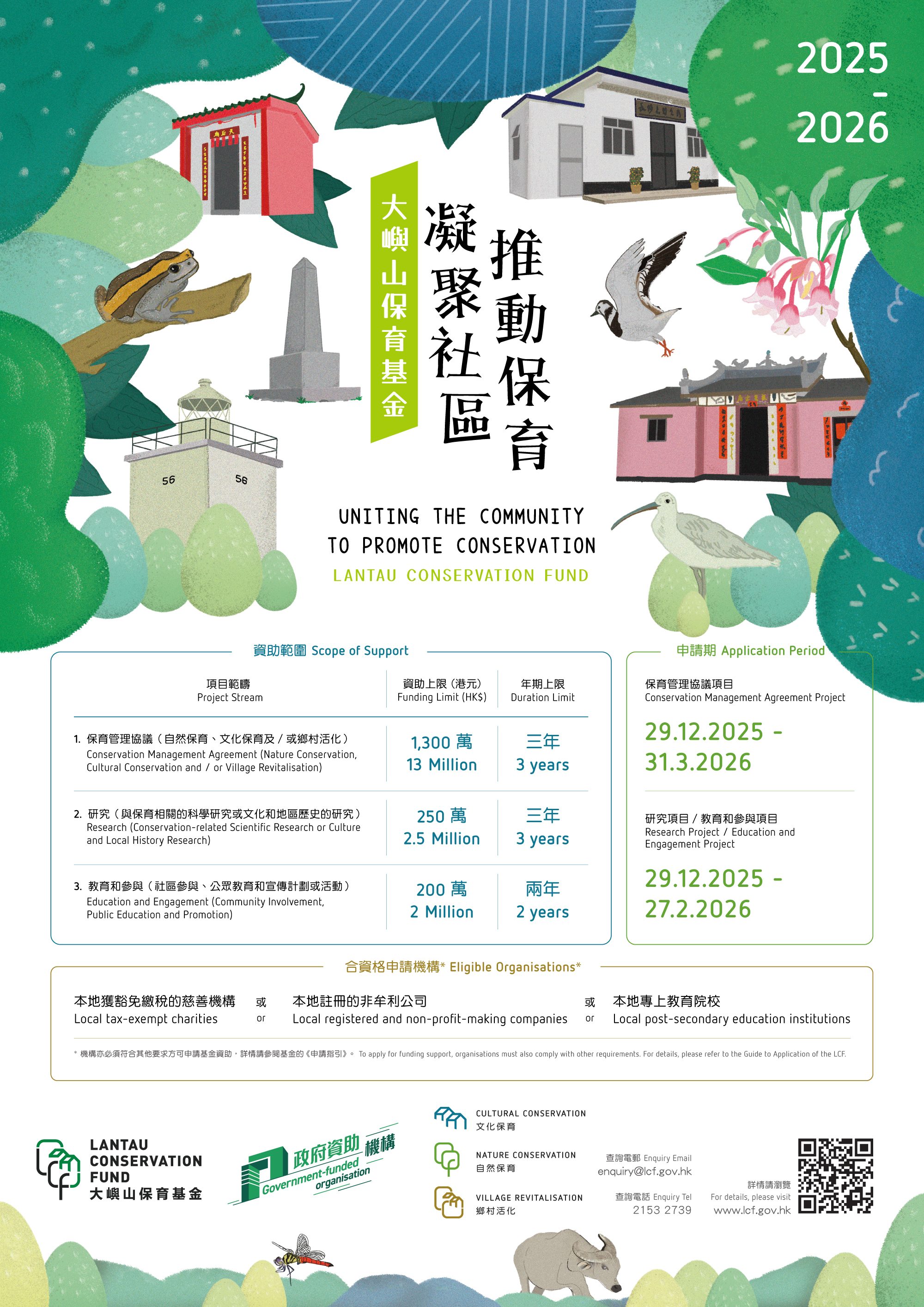 2025-2026 Lantau Conservation Fund (LCF) now opens for applications to provide financial support for eligible organisations to implement conservation and related projects in Lantau.
