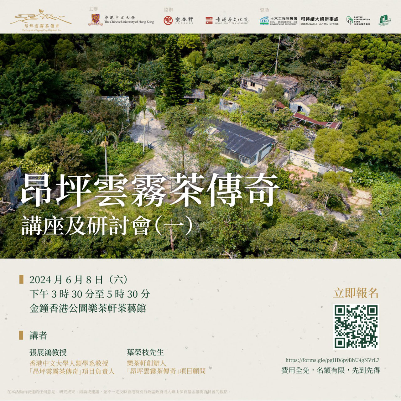 有關講座將會從歷史及人類學的角度出發,分享「昂坪雲霧茶傳奇」研究團隊的初步研究發現。昂坪茶園位於大嶼山海拔450多米的木魚山山腰,在1948年由前御用大律師貝納祺創辦,是大嶼山內唯一的大型茶園。高峰時期茶園內植有茶樹逾60英畝,其特產「蓮花嘜雲霧茶」以本地銷售為主,部分商品更會按特別要求遠銷海外。
